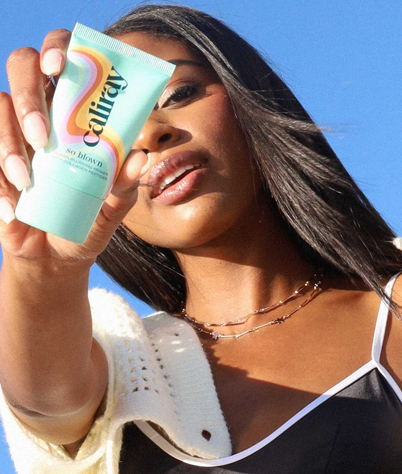 -squeeze dime-size amount of so blown primer and apply to face with your fingers, a brush or a sponge. wear alone as clear foundation, underneath skin tint or mix with sundrip bronzing drops. creates a velvety, super-filtered look.